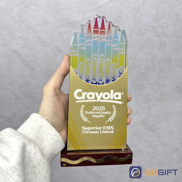 Cúp thiết kế riêng theo hình hộp bút màu – biểu tượng làm nên thương hiệu Crayola